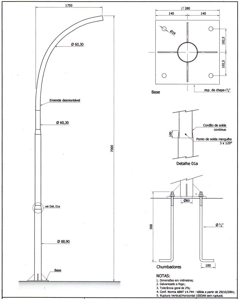 Poste Reto Base e Chumbadores