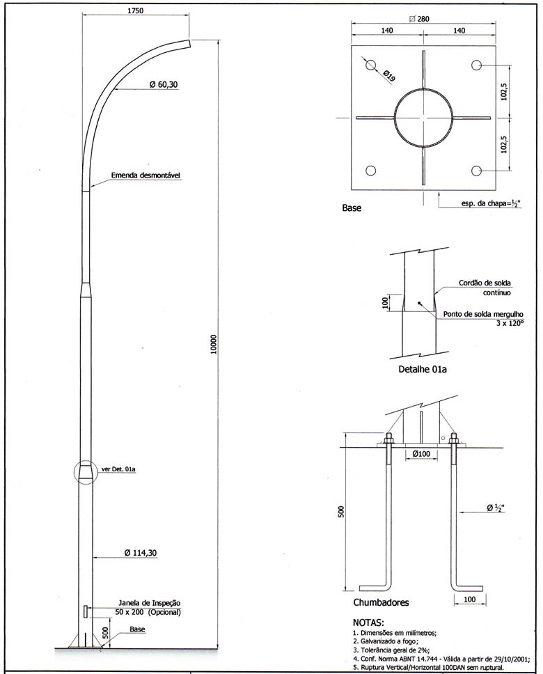 Poste Reto Base e Chumbadores