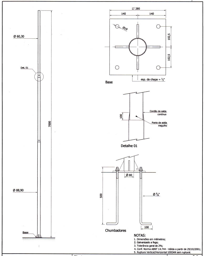 Poste Reto com Base e Chumbadores 07 Metros