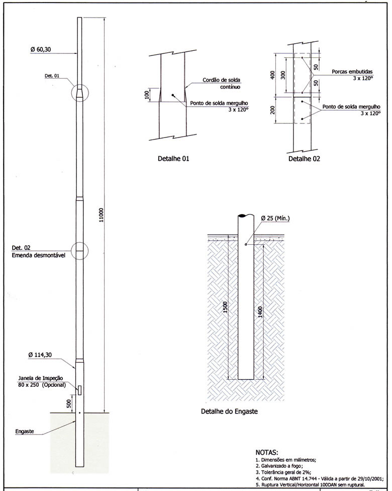 Poste Reto Engastado 11 Metros