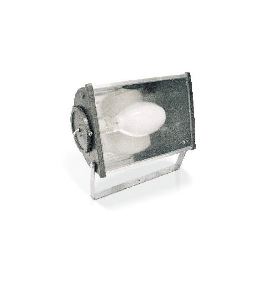 Projetor para iluminação especifica fechado para uso interno e externo, para 1 lâmpada Corpo refletor simétrico em chapa de alumínio brilhante, laterais em chapa de aço tratada. Tela de proteção em aço zincado, manutenção lateral por uma canopla fixada e selada. Difusor em vidro plano temperado transparente.